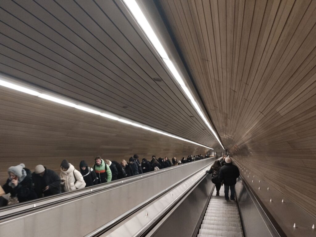 Když jsem vzal poprvé LightPhone do ruky a zapnul ho, mimoděk se mi vybavila stanice metra Náměstí Míru, kde nyní na eskalátorech nejsou reklamy. LightPhone působí obdobně čistě, nerušivě a svobodně. Foto: Náměstí Míru, foceno LightPhonem.